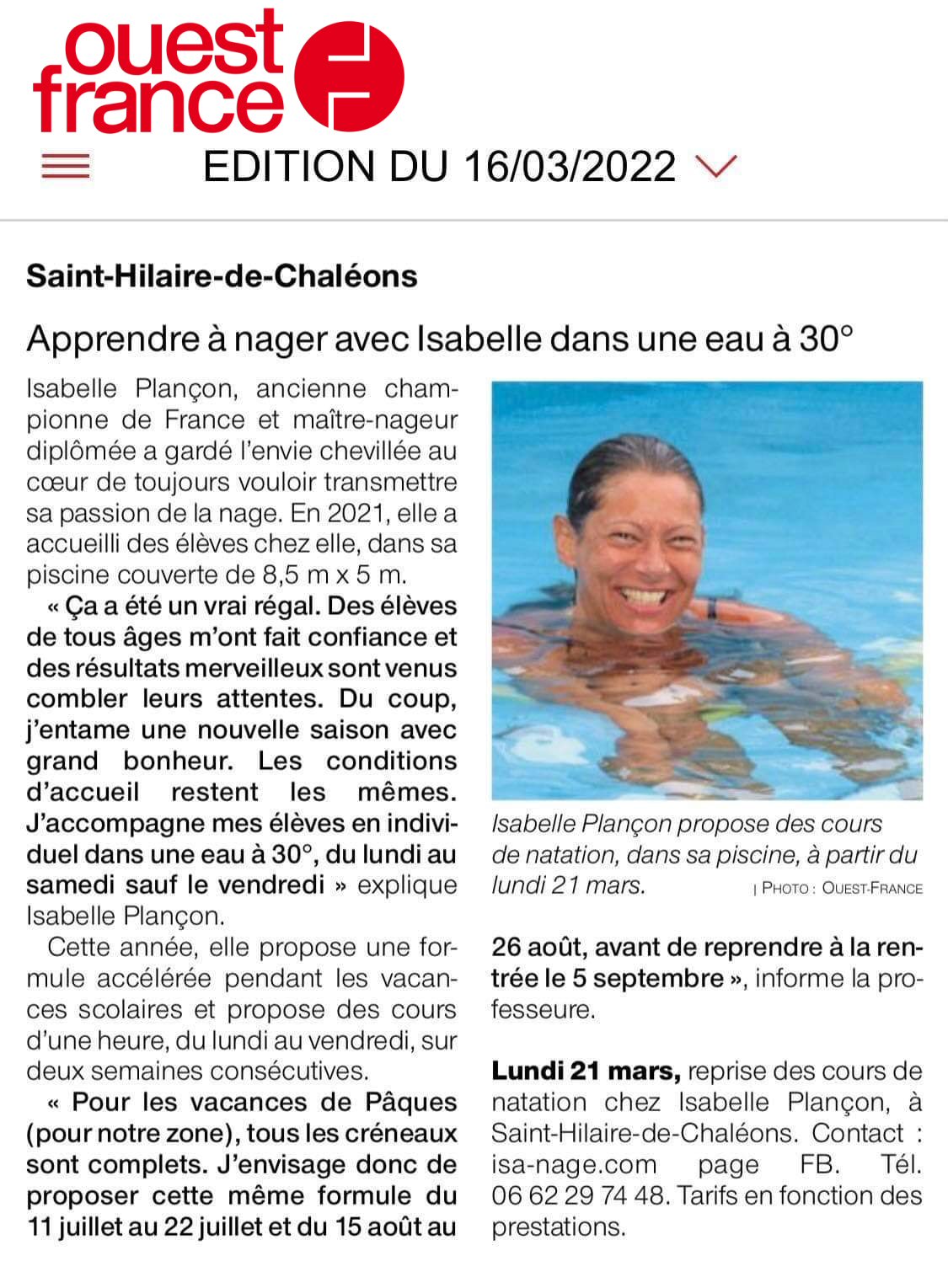 Vu dans le journal Ouest France  -  le 16/03/2022